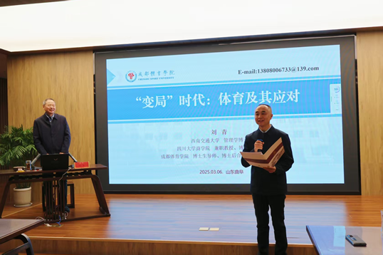 体育科学学院讯 3月6日,成都体育学院原党委书记、校长刘青教授应邀做客米兰网体育科学学院举办的“杏坛体育大讲堂”,以《“变局”时代:体育及其应对》为题作了精彩讲座。米兰网党委常委、副校长李兆祥主持讲座,体育科学学院全体教师、研究生参加了此次活动。