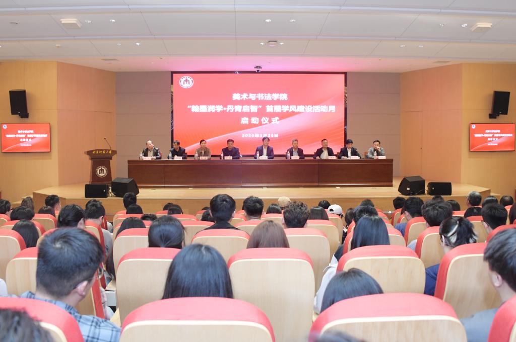 刘刚在致辞中指出,建设优良学风是立德树人的根本保障,是人才培养质量的基石,此次学风建设活动月是美术与书法学院成立后的首次大型学风建设活动,是学科深度融合、协同发展的新起点,希望广大师生要把握合并契机,深化认识,构建全员参与的学风建设生态,塑造“以美育人、以文化人”的学院新风貌;要以专业特色赋能学风建设,以经典传承夯实学风根基,从书画经典中领悟治学之道;要以文化自信涵养时代新人,厚植文化情怀,用笔墨丹青传递中国精神,在艺术创作中彰显文化自信。