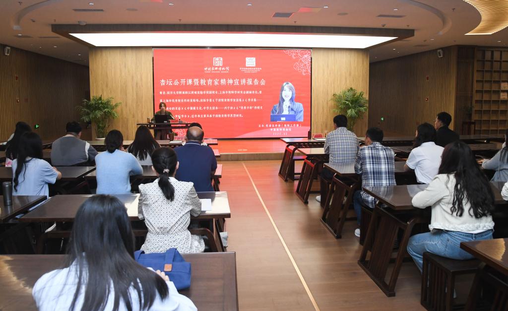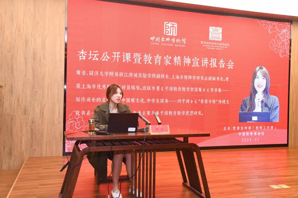 曲阜师大党委宣传部讯 5月8日,曲阜师大举办第13期杏坛公开课暨教育家精神宣讲报告会,同济大学附属新江湾城实验学校副校长、上海市教师学研究会副秘书长、“人民教育家”于漪先生的孙女黄音做专题宣讲报告。学校党委副书记李志红,党委常委、宣传部部长孙祥广出席活动。