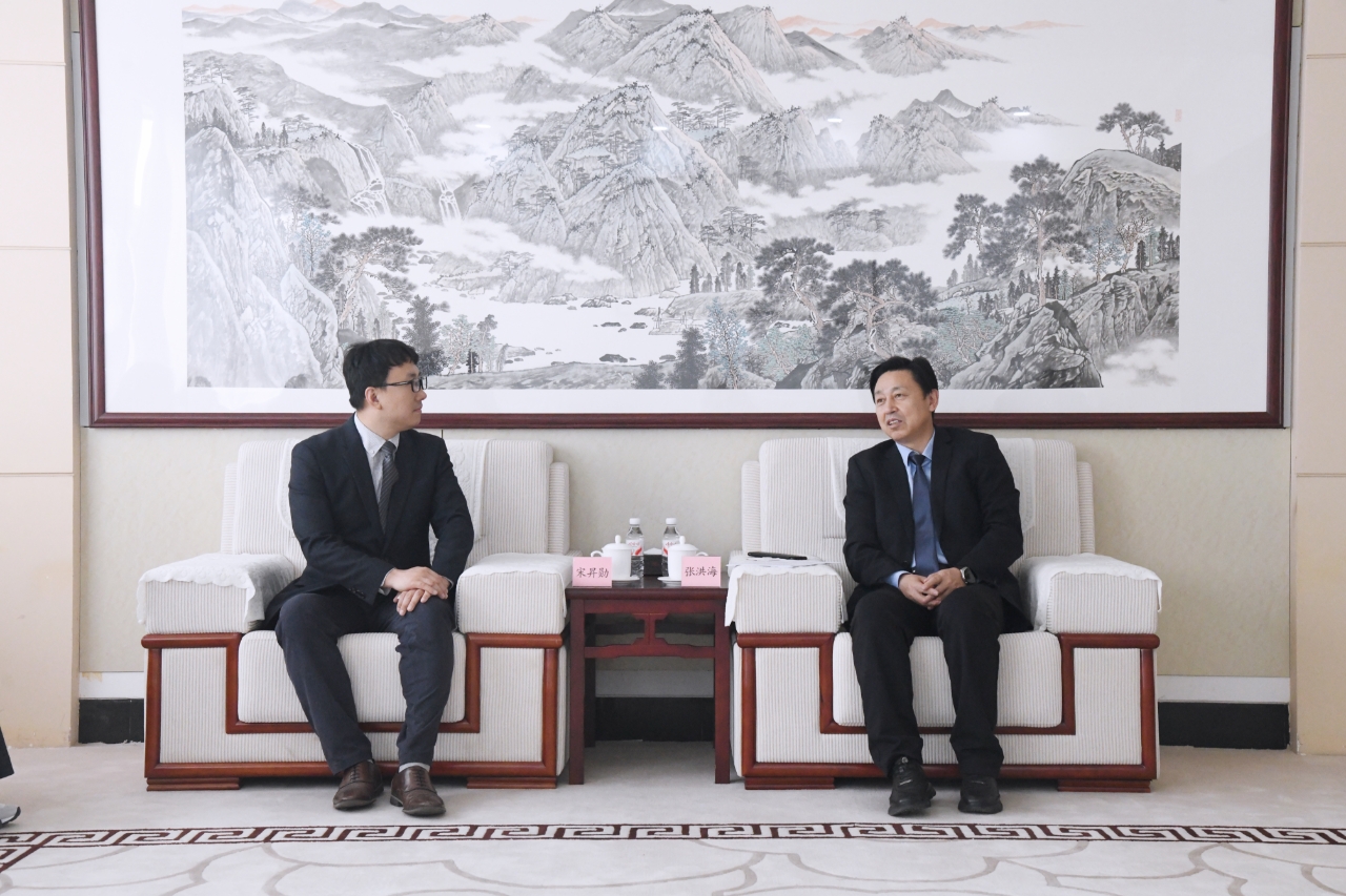 优秀传统文化教育中心讯 5月14日,韩国全北特别自治道政府上海代表处首席代表宋昇勋一行到访曲阜师大。学校党委副书记、校长张洪海会见来宾并座谈交流。