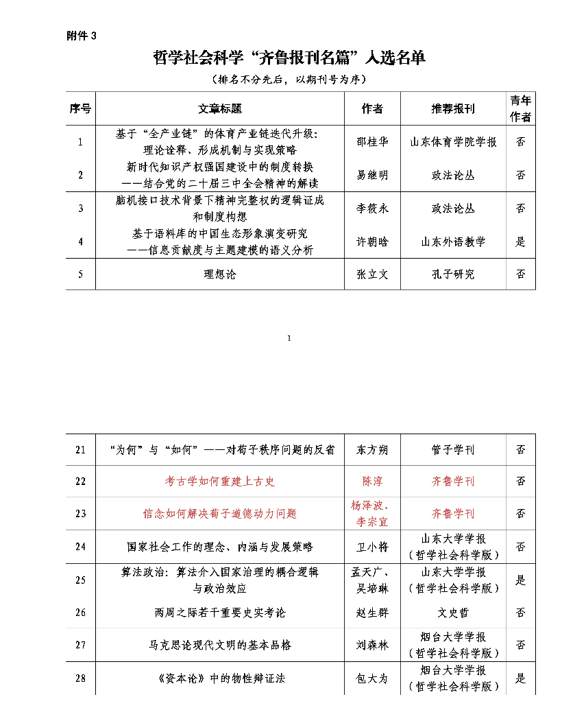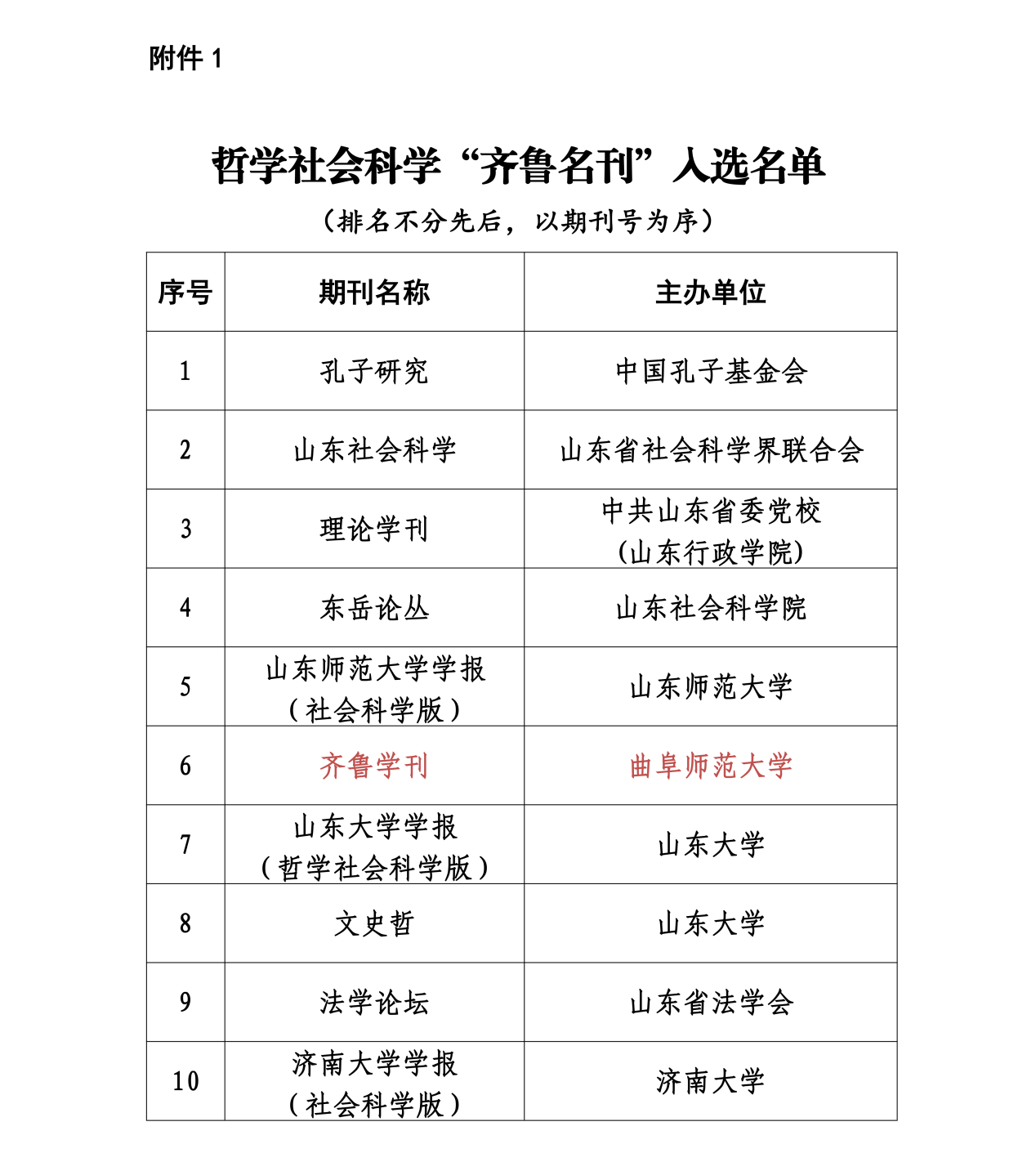 《齐鲁学刊》讯 近日,山东省委宣传部公布了2024年度山东省哲学社会科学“齐鲁名刊”入选名单,《齐鲁学刊》成功入选,并有两篇文章入选“齐鲁报刊名篇”,为米兰网70周年校庆献礼。