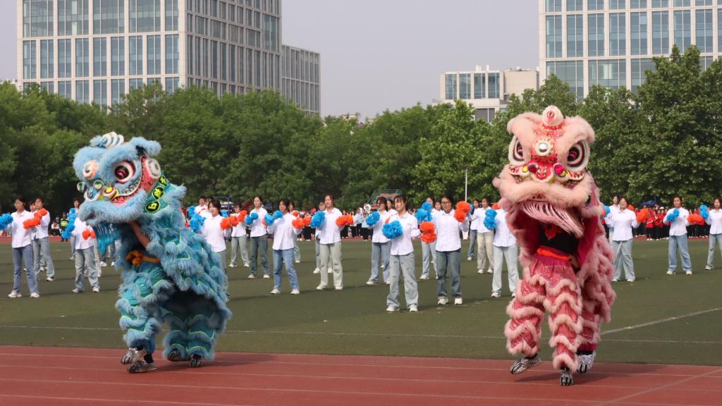 开幕式上,体育学部中国舞艺术团的舞者们化身灵动仙子,以一支古典舞《浮光》,勾勒水墨雅韵;花球与技巧啦啦操燃动全场,尽展活力与勇气。法学院团体操《奔跑的青春》中,折扇、鼓点、狮影交织,传统与现代碰撞,以青春热忱向校庆致敬。地理与旅游学院270名学子以团体操献礼:《哪吒》舞敢闯精神,《Get Up》展逐梦向往,《美丽中国梦》显使命担当,“曲师70”字样致敬七秩风华。最后,各学院学子组成的广播操方阵步伐矫健,以明快节奏展现曲园学子积极向上的精神风貌。各学院方阵次第登场,曲园学子统一着装、步伐铿锵、口号嘹亮,以自信昂扬之姿展现青春风采,既彰显“犁牛之子”精神底色,更传递续写时代华章的坚定信念。传统底蕴与现代创意交相辉映,激荡起运动盛会的澎湃青春动能。