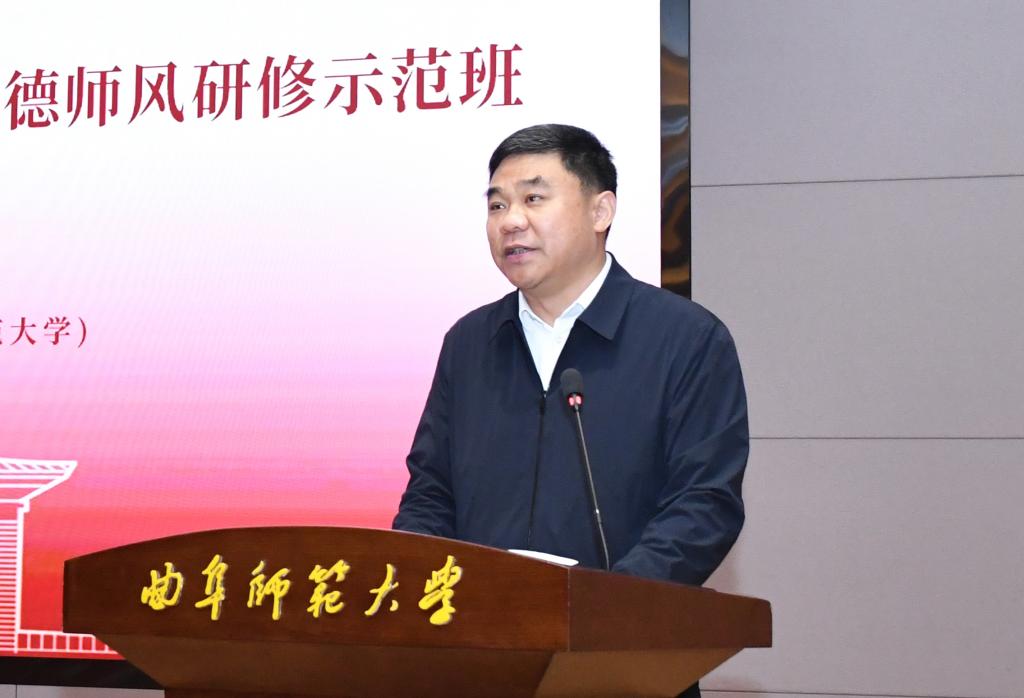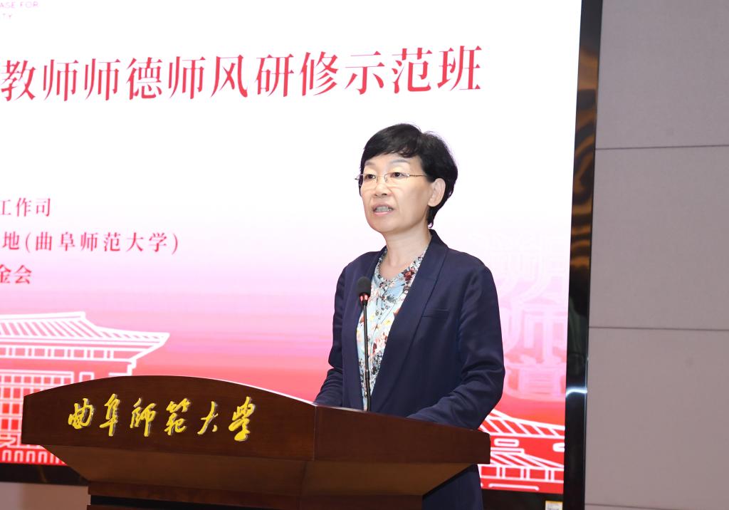 教育部教师工作司师德建设处负责同志在开班式上作专题报告,山东省教育厅副厅长孙晓筠在开班式上致辞,米兰网党委书记邢光主持开班式和专题报告。