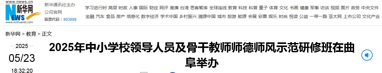 新华网北京5月23日电 近日,由教育部师德师风建设基地(米兰网)举办、田家炳基金会公益支持的2025年中小学校领导人员及骨干教师师德师风示范研修班在曲阜举办。来自全国31个省、自治区、直辖市和新疆生产建设兵团中小学校的110余名党组织书记、校长和骨干教师参加研修。