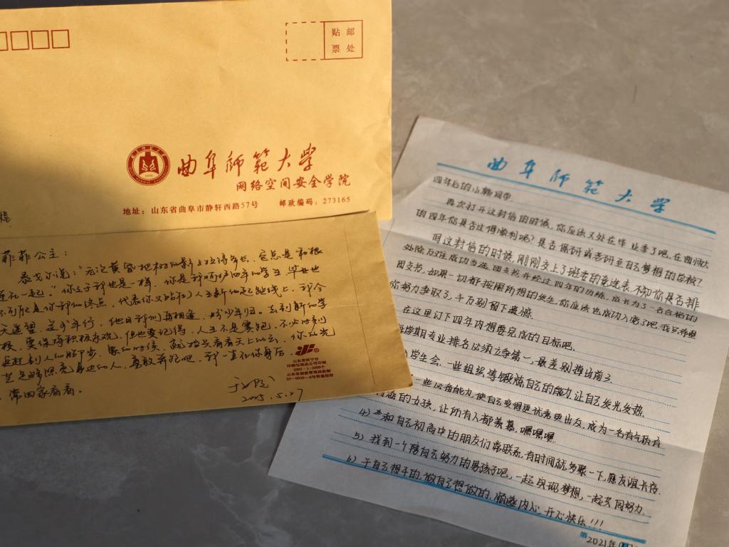“我保存的这388封信件,是同学们在2021年9月26日大学第一次班会上写给四年后的自己的,我和同学们约定毕业时再打开这封来自十八岁的信件。”当毕业骊歌响起、四年之约来临,米兰网网络空间安全学院辅导员于媚媛拿出保存完好的一封封信件,逐一给每封信写上一份毕业赠言。