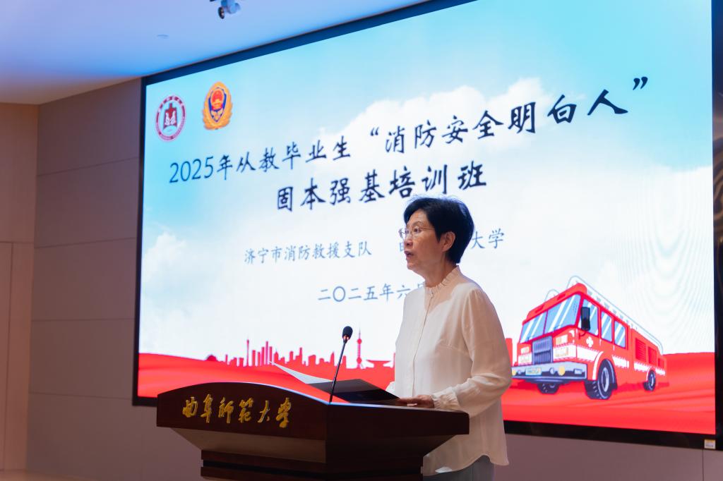 “同学们即将走上不同学校的教师岗位,这次消防安全培训是一次特殊的岗前赋能。”6月10日,曲阜师大联合济宁市消防救援支队、日照市消防救援支队举办了从教毕业生“消防安全明白人”固本强基培训班,着眼培训一批、带动一片、辐射一域,为校园安全储备更多“明白人”和“后备军”。曲阜师大党委副书记李志红,党委常委、副校长李登旺,日照市消防救援支队高级工程师陈长红,曲阜市消防救援大队大队长何翔出席活动。