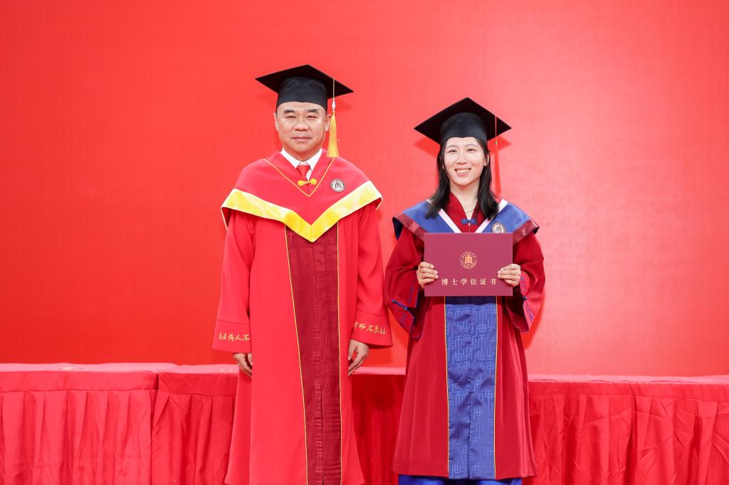 曲阜师大党委书记邢光为获得博士学位的同学拨穗正冠、颁发学位证书