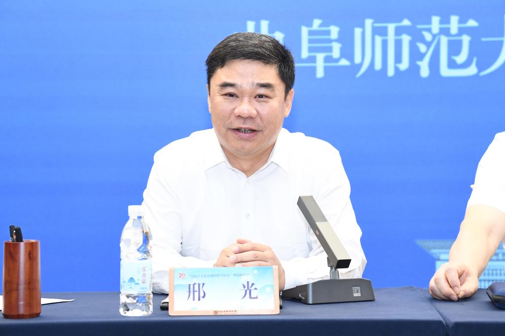 邢光在开幕式致辞中介绍了学校办学历史、哲学学科发展特色,重点介绍了学校在习近平新时代中国特色社会主义思想研究方面取得的成就。希望此次学术盛宴,能为专家学者们搭建良好对话的学术平台,在思想碰撞中感受“习近平文化思想”的精髓与魅力,推进中华优秀传统文化创造性转化、创新性发展以及“两个结合”研究再上新台阶。