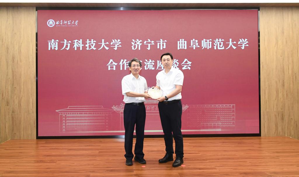 南方科技大学党委常委、副校长方红卫,党委常委、党委组织统战部部长史江红,济宁市委常委、秘书长、一级巡视员董波,济宁市副市长李丽,曲阜师大党委常委、副校长李登旺,党委常委、组织部部长王明科,党委常委、宣传部部长孙祥广以及两校相关部门和单位负责人参加座谈会。