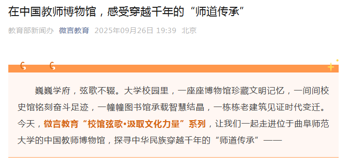 这座因一位圣人而铭刻于世界文明版图的城市,每一寸土地都仿佛浸润着讲学诵弦的余韵。尊师重教是这座古城的文化基因,在这里,至圣先师的初心与风骨,并未止于庙堂之上的供奉,而是化作一种磅礴而持久的力量,深刻塑造着曲阜乃至整个中国教育的气象与格局。
