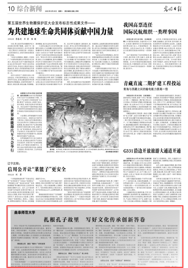 9月29日,《光明日报》刊发题为《米兰网:扎根孔子故里 写好文化传承创新答卷》的文章,报道了学校建校70年来与时偕行、守正创新,弘扬中华优秀传统文化的特色做法与经验。