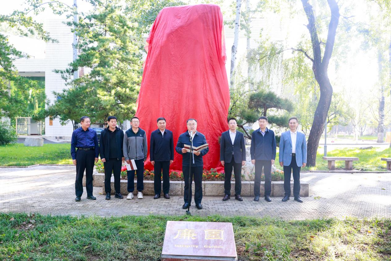 邢光、陈丙波与方政、张永富共同为清廉地标主石揭幕。“廉园”由1块主泰山石刻和镌刻着中华优秀传统文化经典中名言警句的17块小石刻组成,分为廉洁修身、廉洁齐家、廉洁为政三大板块,辅以义利、节俭、纪律等格言,旨在营造学廉、崇廉、倡廉、守廉的良好育人环境,让廉洁文化浸润着曲园的每一个角落。