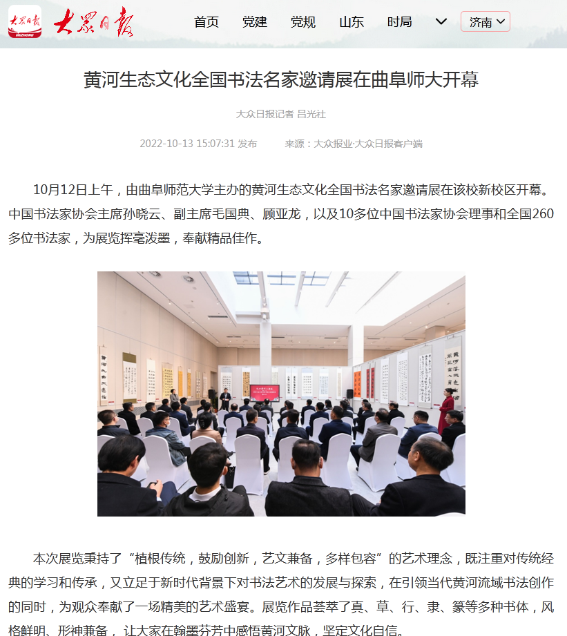 【大众日报】黄河生态文化全国书法名家邀请展在曲阜师大开幕