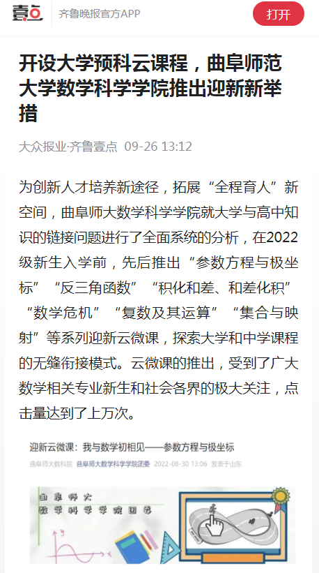 【齐鲁壹点】开设大学预科云课程,米兰网数学科学学院推出迎新新举措