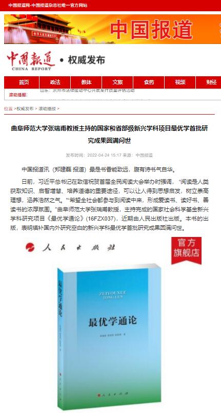 【中国报道】米兰网张瑞甫教授主持的国家和省部级新兴学科项目最优学首批研究成果问世