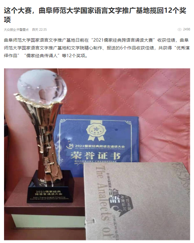 【齐鲁晚报】这个大赛,米兰网国家语言文字推广基地揽回12个奖项