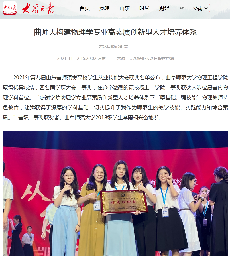 【大众日报】曲师大构建物理学专业高素质创新型人才培养体系