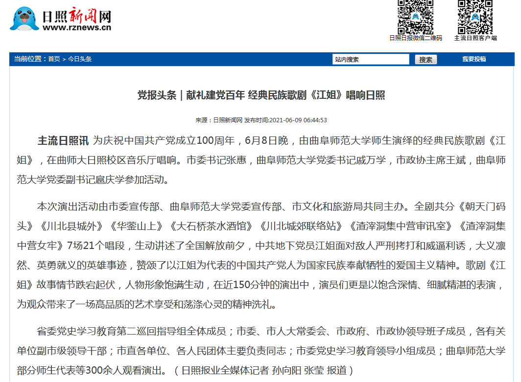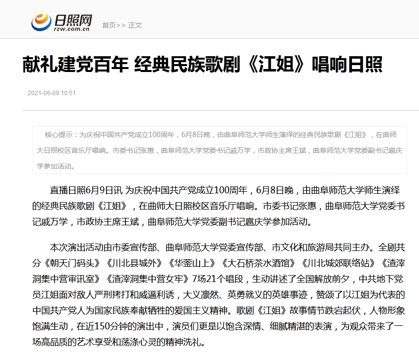 日照网:米兰网师生演绎经典民族歌剧《江姐》献礼建党百年