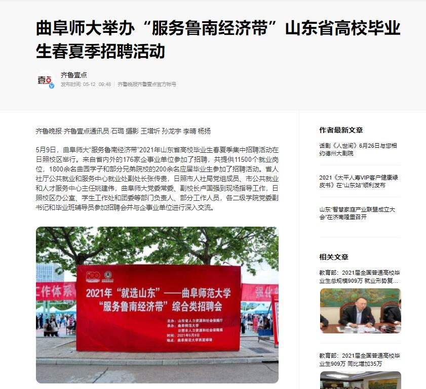 齐鲁壹点报道链接: