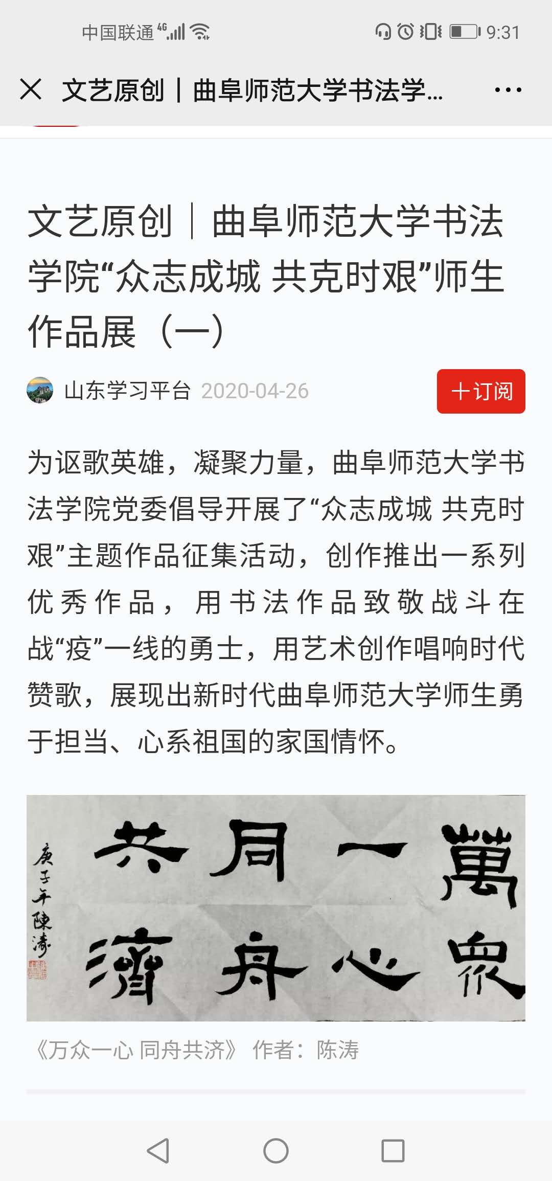 学习强国:米兰网书法学院“众志成城 共克时艰”师生作品展(1—4)