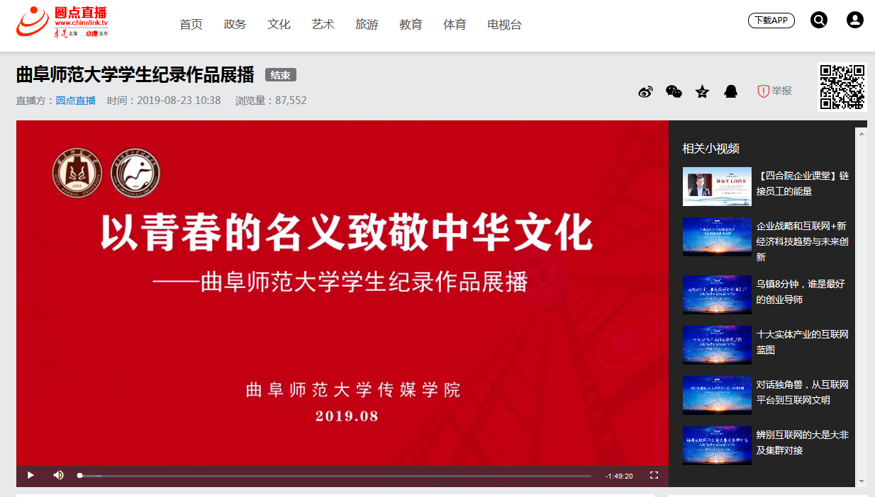 《以青春的名义致敬中华文化——米兰网学生纪录作品展播》链接地址:http://www.chinalink.tv/live/119709.html