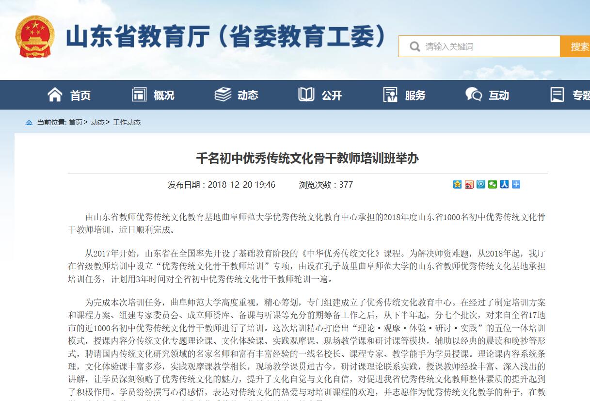 山东省教育厅报道链接:http://edu.shandong.gov.cn/art/2018/12/20/art_11969_4258166.html