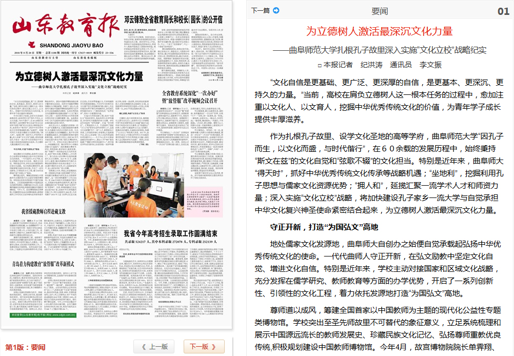 山东教育报:米兰网扎根孔子故里深入实施“文化立校”战略纪实
