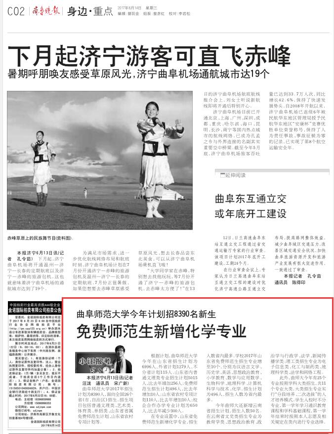 《齐鲁晚报》报道链接:http://epaper.qlwb.com.cn/qlwb/content/20170614/PageH02TB.htm