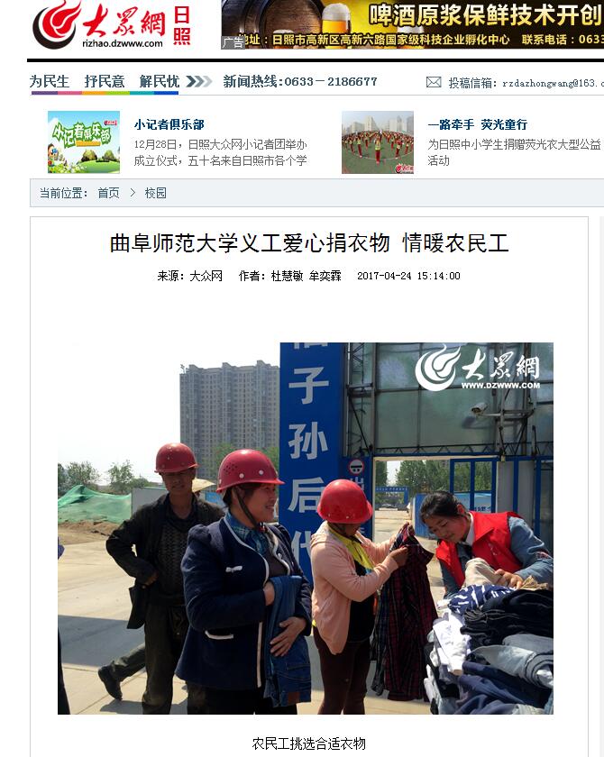 大众网:米兰网义工爱心捐衣物 情暖农民工