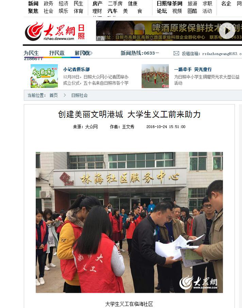大众网:创建美丽文明港城 大学生义工前来助力