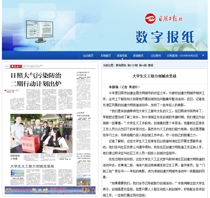 黄海晨刊:大学生义工助力创城攻坚战