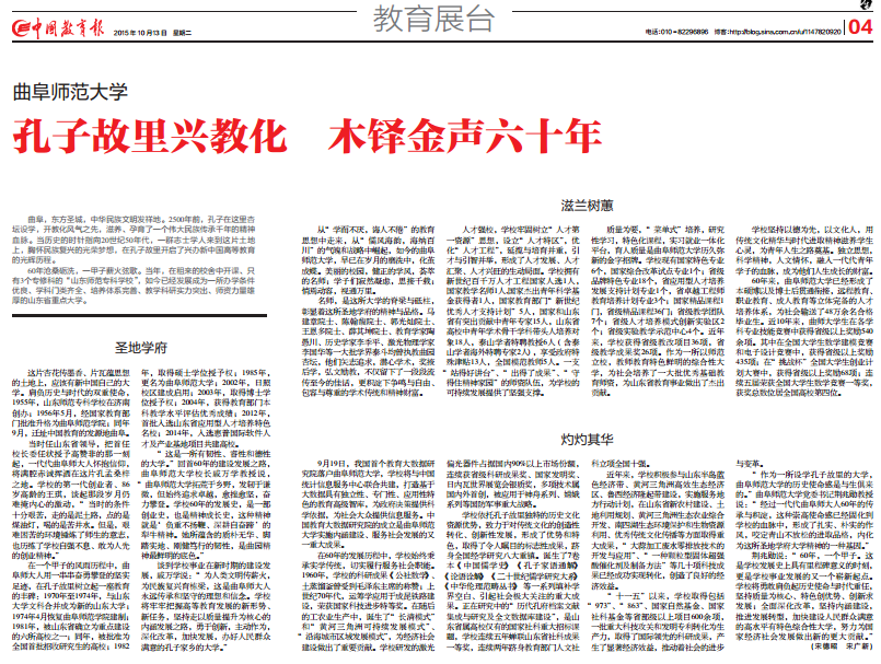中国教育报报道链接:米兰网 孔子故里兴教化 木铎金声六十年