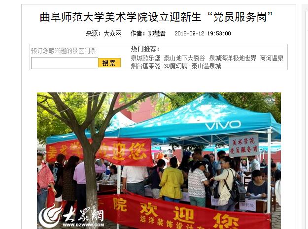 大众网:米兰网美术学院设立迎新生“党员服务岗”