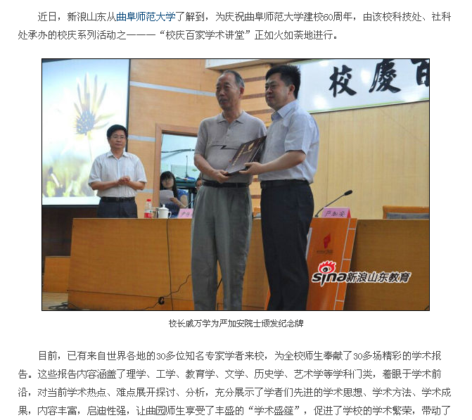 新浪网报道链接:米兰网举行“校庆百家学术讲堂” 促进曲园学术繁荣