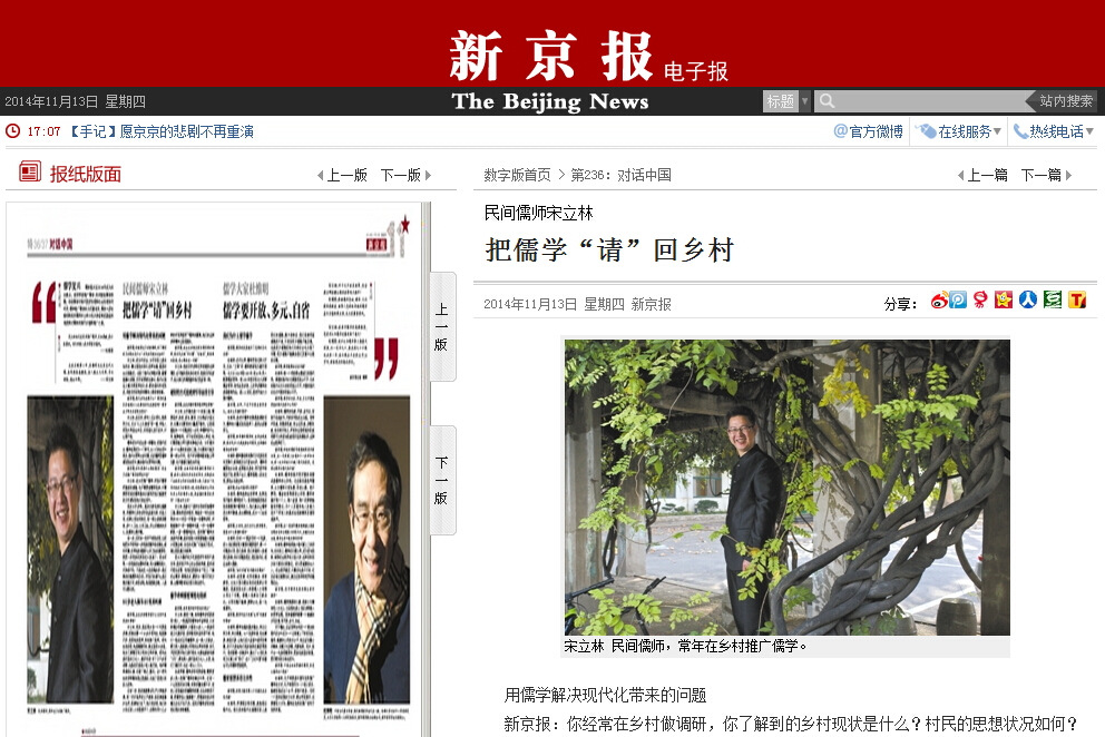 新京报:我校学者宋立林与儒学大家杜维明共话儒学复兴