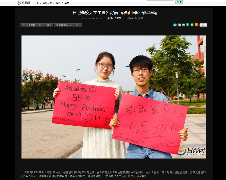 中青网报道链接: 日照网报道链接: