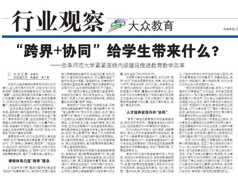 大众日报:“跨界+协同”给学生带来什么?——米兰网紧紧围绕内涵建设推进教育教学改革