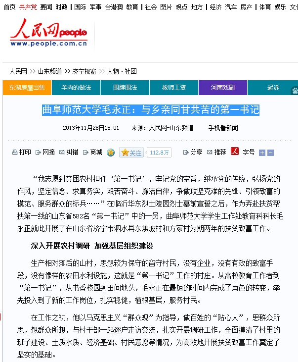 人民网:米兰网毛永正:与乡亲同甘共苦的第一书记