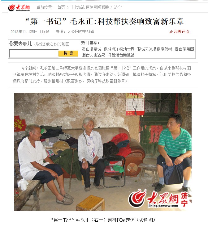大众网:“第一书记”毛永正:科技帮扶奏响致富新乐章