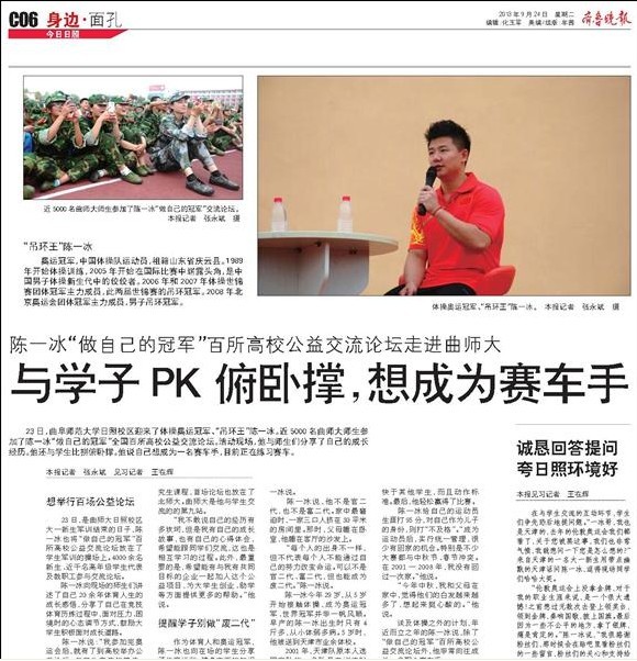 齐鲁晚报:奥运冠军陈一冰走进曲师大与大学生交流
