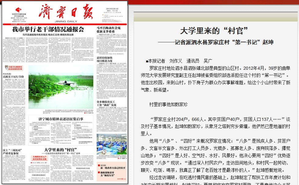 济宁日报:大学里来的“村官”———记省派泗水县罗家庄村“第一书记”赵坤