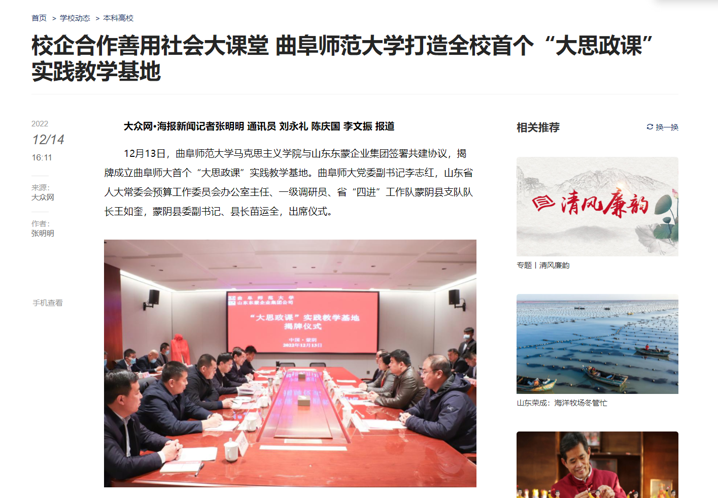 大众网报道链接: