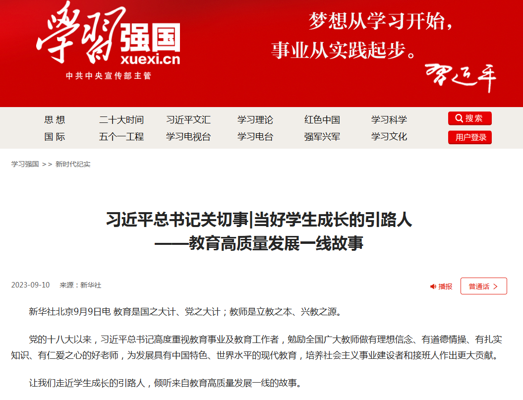 教育部网站报道链接:http://www.moe.gov.cn/jyb_xwfb/xw_zt/moe_357/2023/2023_zt14/mtbd/202309/t20230910_1079409.html