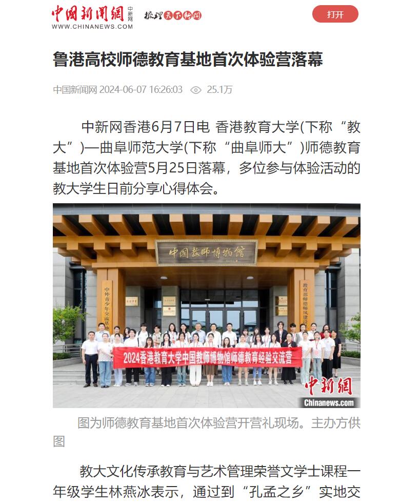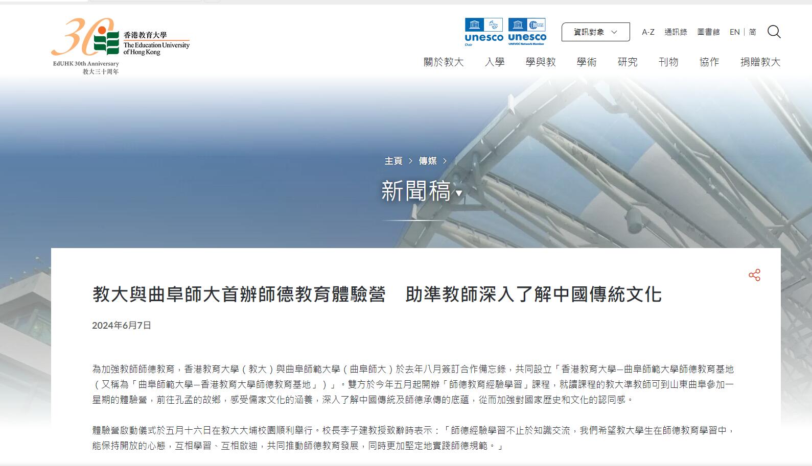 香港教育大学报道链接:https://www.eduhk.hk/zht/press-releases/eduhk-and-qfnu-jointly-organised-the-first-teacher-professional-ethics-education-camp-to-enhance-pre-service-teachers-understanding-of-traditional-chinese-culture