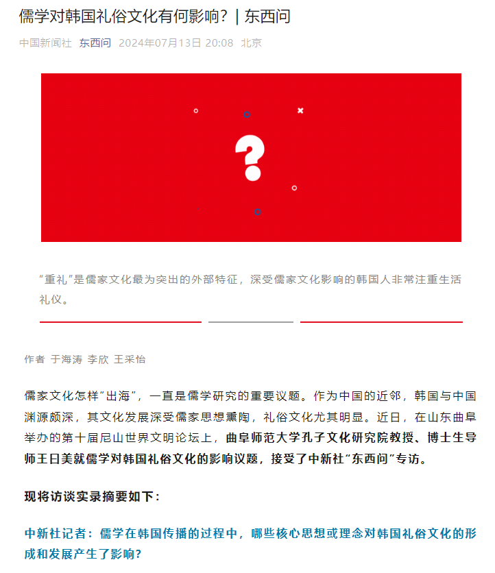【中国新闻社】米兰网孔子文化研究院教授、博士生导师王曰美接受中新社“东西问”专访