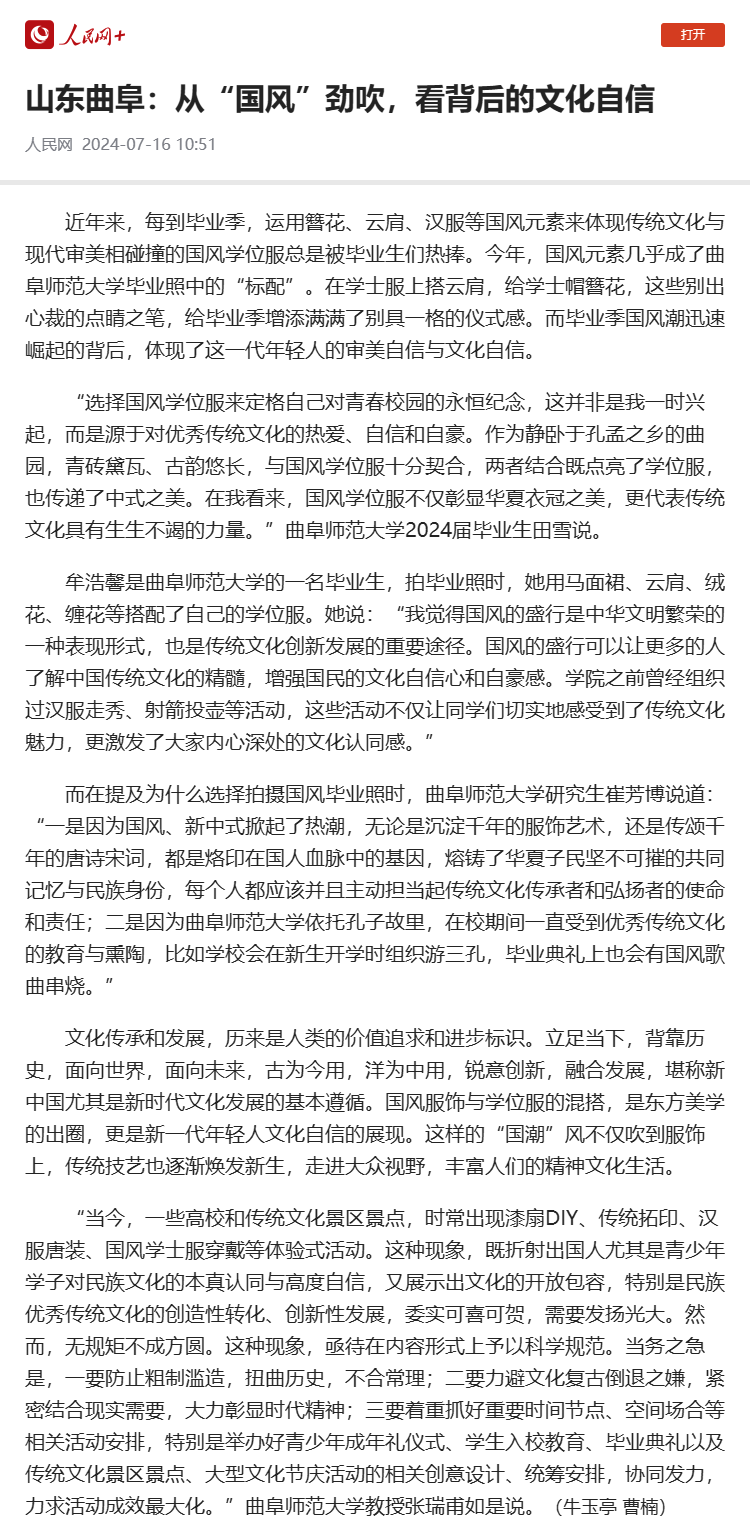 【人民网】曲阜师大师生:从“国风”劲吹,看背后的文化自信