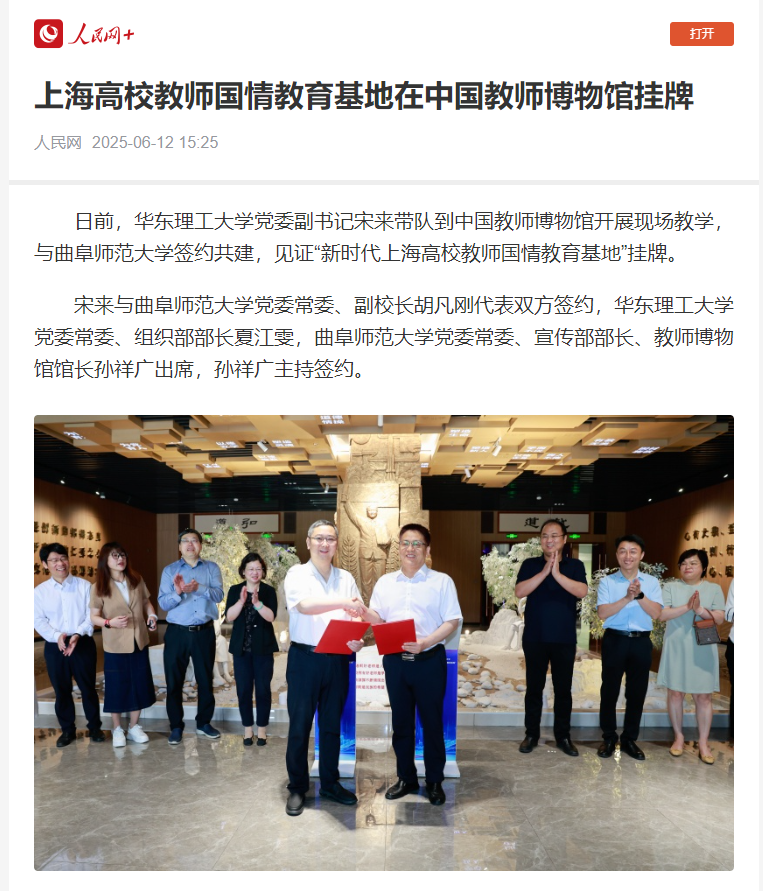 日前,华东理工大学党委副书记宋来带队到教师博物馆开展现场教学,与米兰网签约共建,见证“新时代上海高校教师国情教育基地”挂牌。