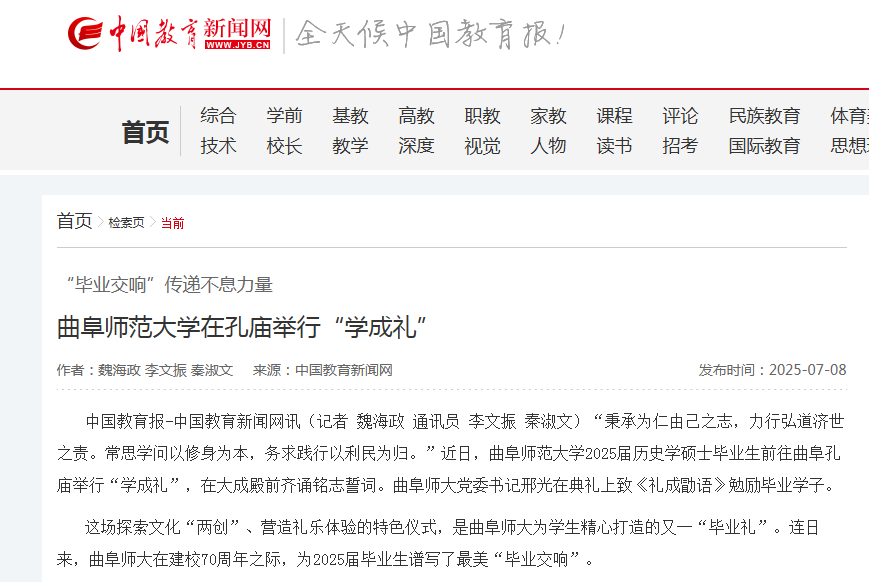 这场探索文化“两创”、营造礼乐体验的特色仪式,是曲阜师大为学生精心打造的又一“毕业礼”。连日来,曲阜师大在建校70周年之际,为2025届毕业生谱写了最美“毕业交响”。