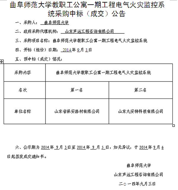 米兰网教职工公寓一期工程电气火灾监控系统采购中标(成交)公告