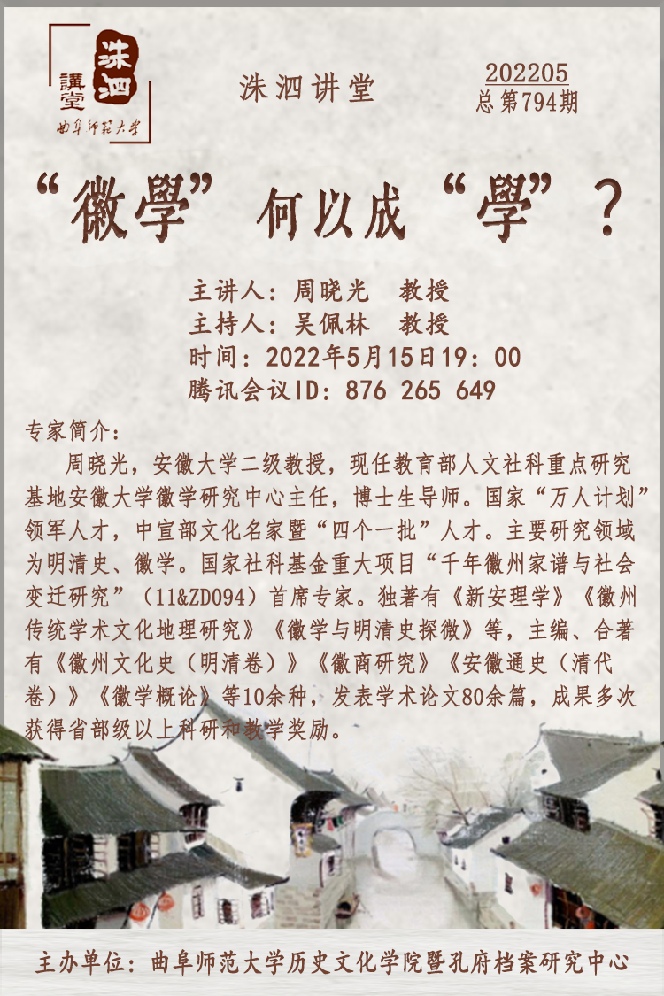 洙泗讲堂预告| 周晓光:“徽学”何以成“学”?